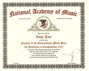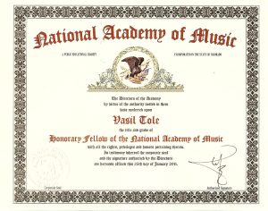 | 2011 | “Honorary Fellow of the National Academy of Music”, Neapolis, Greece |