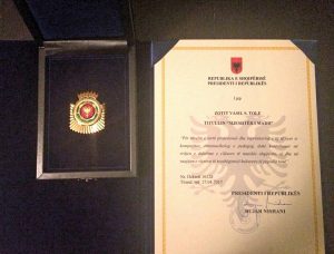 | 2015 | “Qytetar nderi” i qytetit-muze të Gjirokastrës, dhënë nga Këshilli Bashkiak i qytetit. |